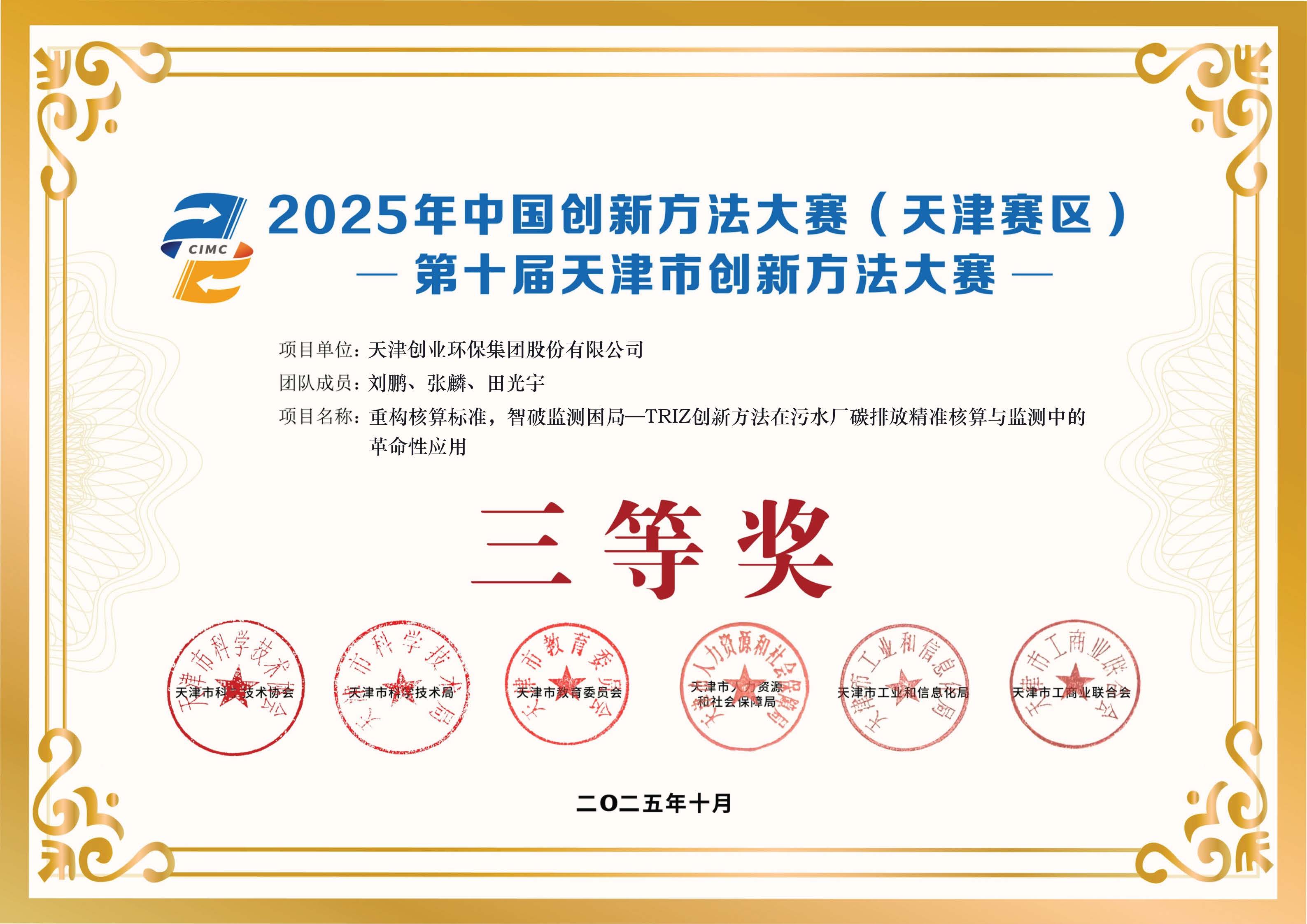 近日,2025年中国创新方法大赛(天津赛区)暨第十届天津市创新方法大赛评选结果正式揭晓。创业环保集团两团队凭借前瞻性的创新项目与扎实的方应用,从众多参赛队伍中脱颖而出,双双荣获大赛三等奖。